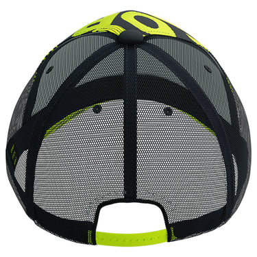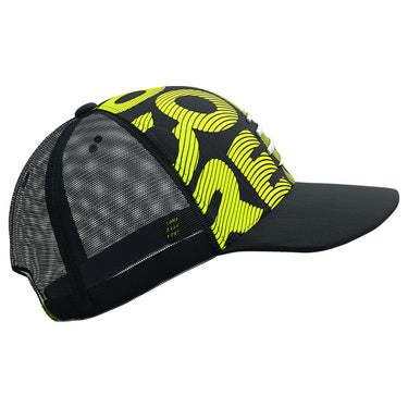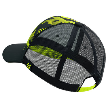 Stylish, adjustable trucker cap with a reflective embroidered logo and fluoro pattern for increased visibility from the racecourse to the city streets